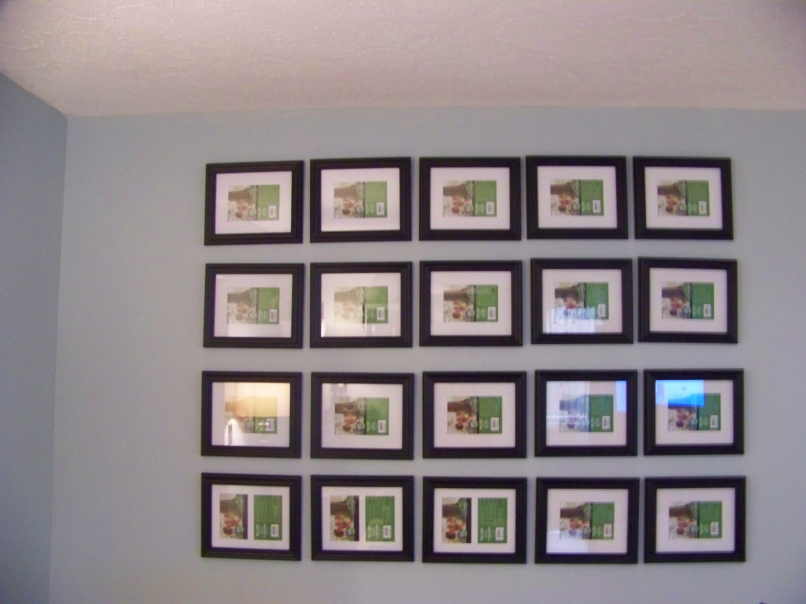 I believe it was fate because I found exactly 20 frames and they already had the white mats.  Let me tell you I cleaned them out!  I had to do some digging (picture me in the floor with picture frames scattered all around me .they were all in a big bin for $2.00 each and I had to search for matching ones.  I'm sure I looked like a crazy lady but I got my frames and headed to the house to get started..Now you know I like to put my pictures backwards(I like to see the pretty ones first)so here's what I did: