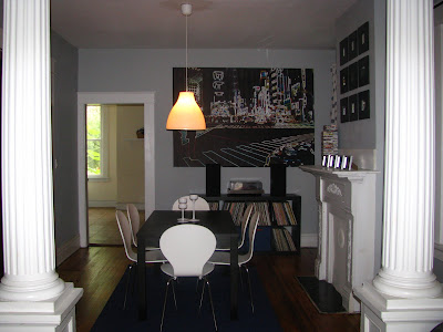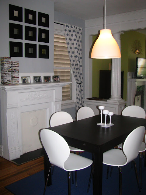 Our Ikea table and Target chairs rounded out the room and all that was left was for us to switch out the chandelier-ish light for a new one. Little did we know, that task would end up taking two days and about 100 trips to the fuse box...