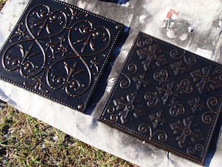 First I painted the HOME sign and two of the Hobby Lobby squares in Totally Teal.