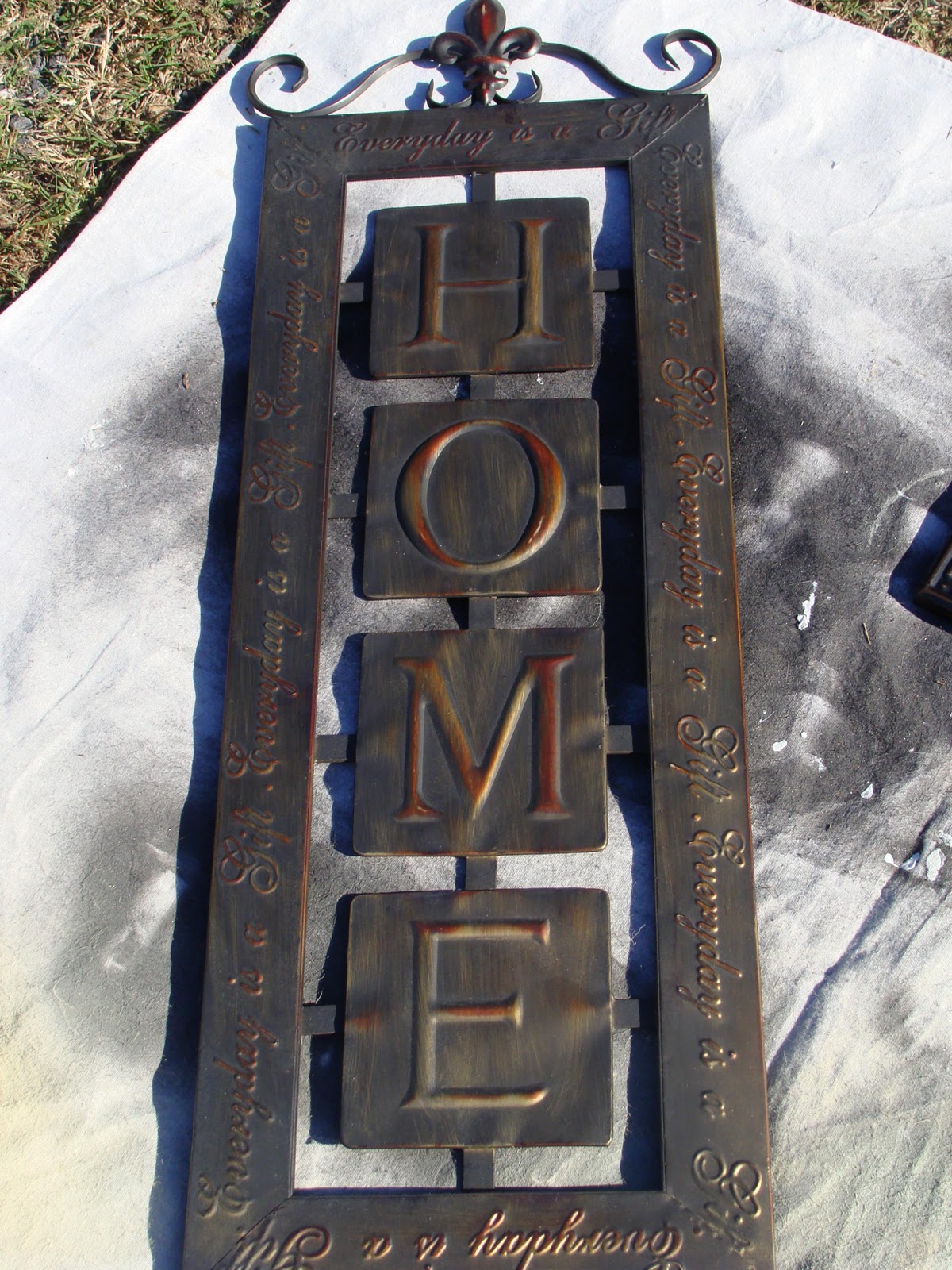 First I painted the HOME sign and two of the Hobby Lobby squares in Totally Teal.