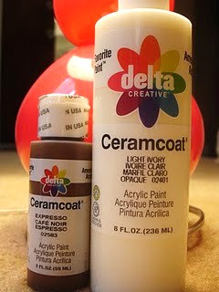 I used a mix of 'expresso' and 'light ivory' acrylic paints by Delta.