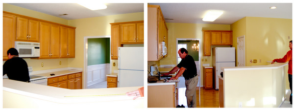 I have a pass/thru but it doesn't have an overlap for barstools. I want to add cabinets to the back and make the whole thing level like what you did. So he just sawed the top off? wow. I'll have to talk to my contractor about that idea when I have more money. We did a minor kitchen remodel a year ago and now need to wait for more money. Looks great!
