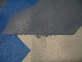 Step 8.  Paint!  I divided my curtain into four parts, so I would tape my first part and paint it before moving onto my second part.  Make sure you press along your tape really well in the area you are painting.  You want good adhesion so paint will not leak underneath.
