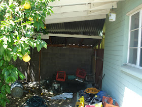 Remember this giant pile of junk in our future chicken coop? On Mother's Day, Mike completely destroyed it with the giddiness of a school boy (fave line of the afternoon: "Hey Love, wanna see me chuck a brick??!?!").
