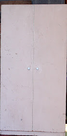And this is what I love about this armoire re-purpose. Most chicken coops have to have circular doors drilled out of them to open and reach in to get the eggs. This was going to be a lot of work for a couple of inexperienced wood-workers, so Mike came up with this instead! Just nail the bottom door shut and remove the handle, lift up the top "hatch" (the other door) and reach in for the eggs. Easy peasy.